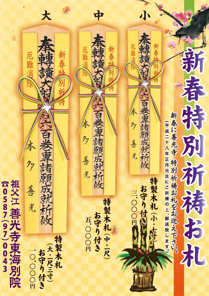 祈祷料:お札(大)10,000円・お札(中)5,000円・お札(小)3,000円 -